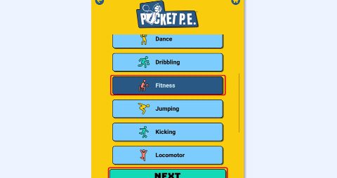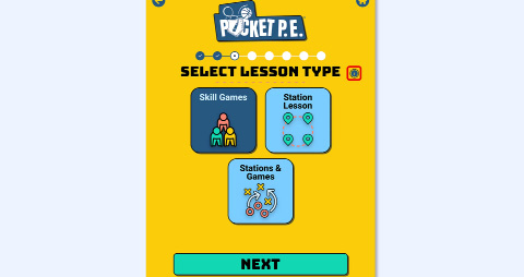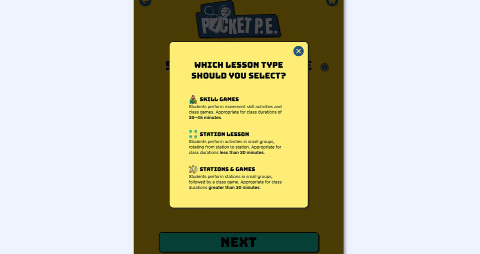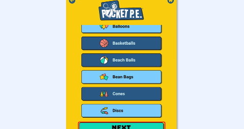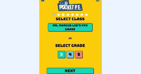 ![]() | Now, choose which class or grade level the lesson is for. Since the app is synced with your Pocket PE web portal dashboard, your class will already be available. You can keep your class selected or choose a grade level instead. Once finished, tap Next. |